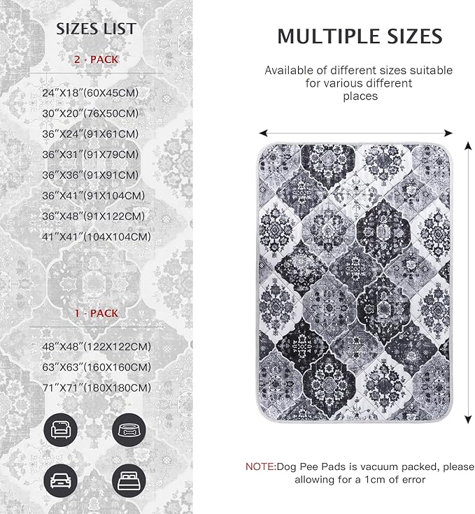 - 【Fashionable and Non-Slip】Our bohemian-print design adds a natural touch to the potty pads for dogs, giving your room a warm, casual vibe. And the non-slip bottom design makes the pet pee pads can achieve a certain fixed effect, you can put it anywhere you want. Soft and non-slip material makes it safer for dogs to use the pads.