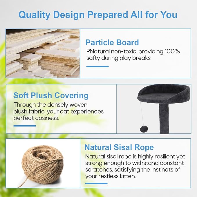 - 🐱 【Posts for Scratching Covered in Sisal 】These are scratching surfaces that are integrated into the framework. Cats love to bury their claws in sisal because it's a sturdy substance with a coarse texture. Our cat tree promotes healthy scratching habits and helps discourage cats from damaging furniture by offering dedicated spaces for them to scratch.