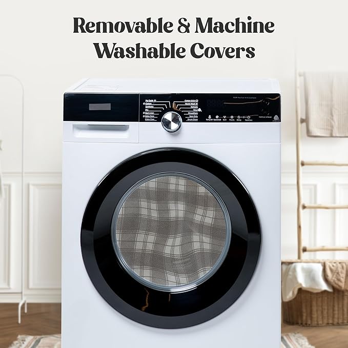 - π¦π§π¬πππ¦π & ππ¨π₯ππππ π¦π¨π¦π§πππ‘ππππ πππ¦πππ‘ Crafted from eco-conscious recycled polyester canvas that's soft, tear-resistant, wrinkle-free, and made for lasting durability. Available in four exclusive designer patterns (Grey Plaid, Light Blue Check, Navy Plaid, Pink Check) and three sizesβSmall, Medium, and Largeβto effortlessly complement any home dΓ©cor.