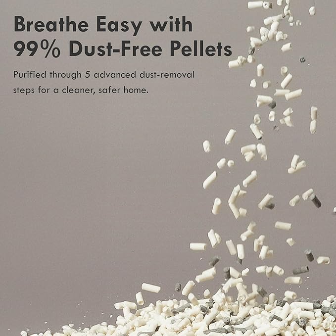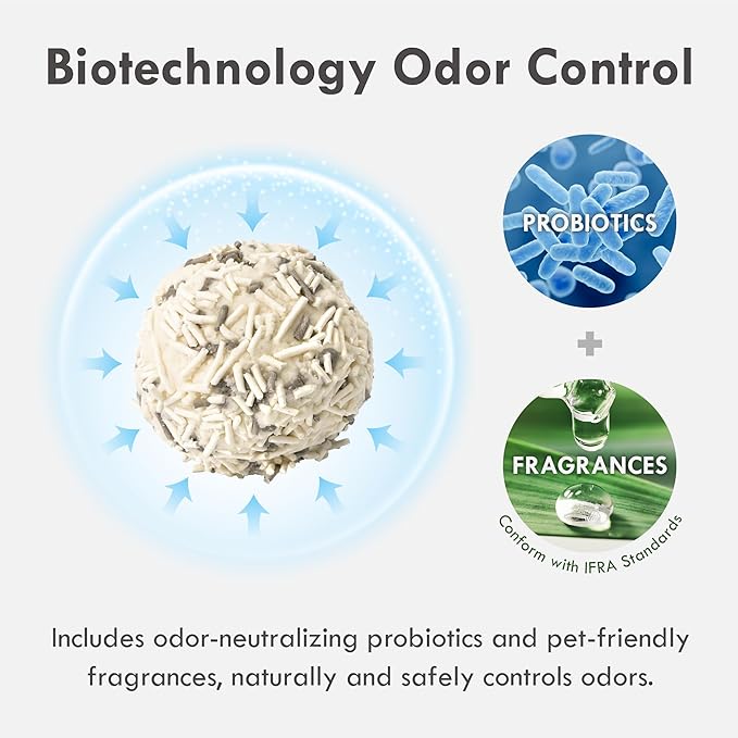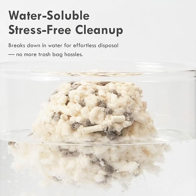 - ADVANCED ODOR CONTROL AND WATER SOLUBILITY: Experience advanced odor control with our exclusive probiotic and activated carbon formula, ensuring a fresh and pleasant atmosphere for both you and your feline companion. Plus, our cat litter is crafted from food-grade ingredients, offering an environmentally friendly and biodegradable solution. It even dissolves quickly in water, making cleanup a breeze.