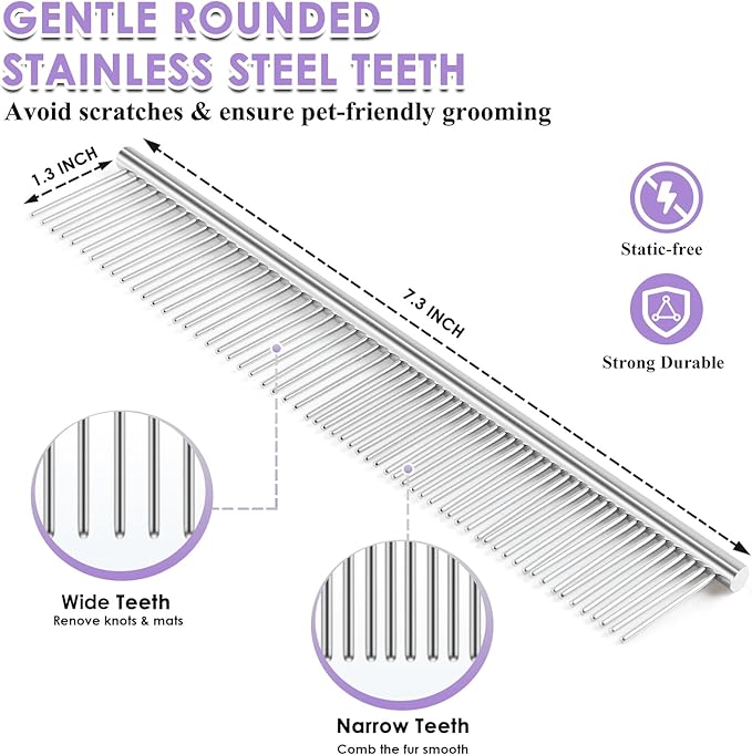 - Complete Grooming Kit Value: 3-in-1 pet grooming kit includes: ①Large slicker brush ②Undercoat rake ③Detangling comb. Safely removes Poodle mats & Persian hairballs. Durable wooden handle withstands frequent use. Vet-recommended for long-haired breeds.