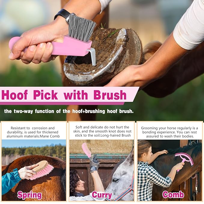 - Practical Gift: these horse grooming tools are suitable for horse groomers, equestrian enthusiasts, beginner riders, stable owners; This horse brush set is a great addition to rider's tack room, or as a gift for that loving horse in your home; You can give this horse grooming kit as a gift to your friends especially those are stable owners, and they will be happy to receive this thoughtful gift