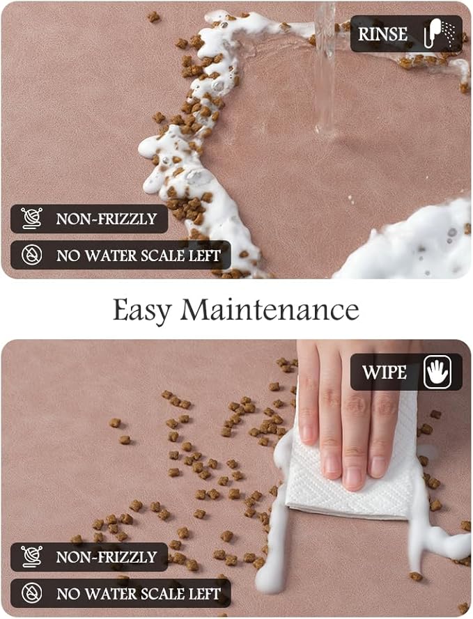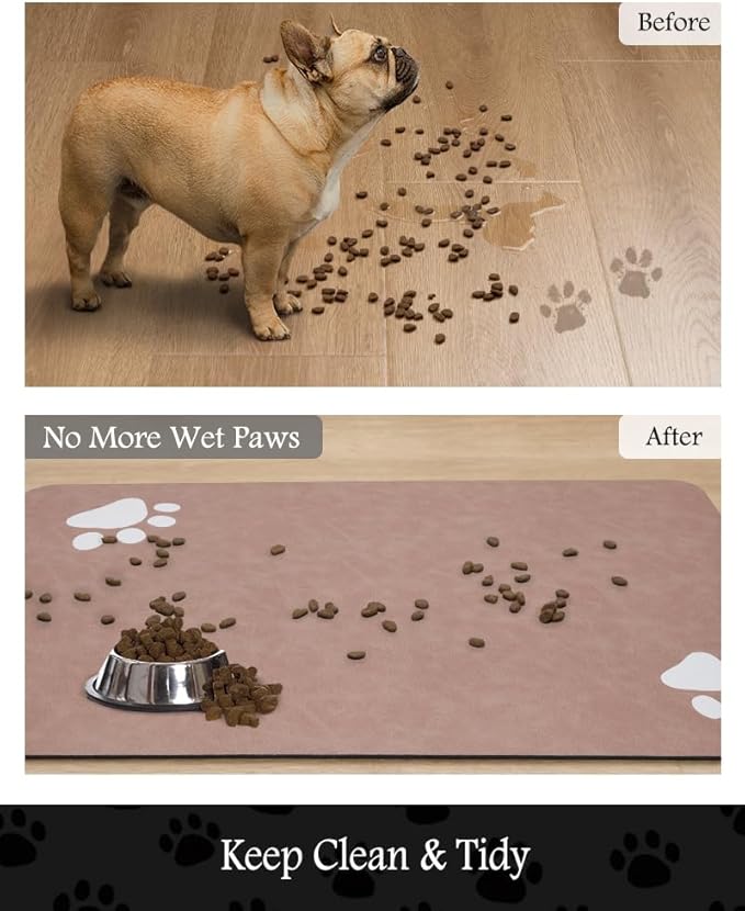 - Super Absorbent & Durable: Perfect pet supplies.This pet food mat can prevent liquid from overflowing. Super absorbent and quick-drying ability to avoid wetting pet paws even for messy drinkers. Sturdy dog & cat food bowl mat cannot be torn easily and avoid eating by mistake. Keep the pet's eating environment tidy and clean.