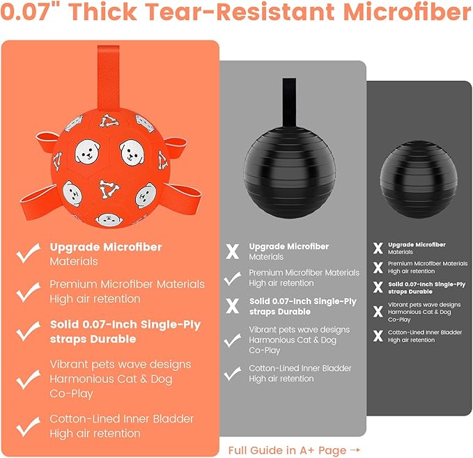 - 💪Durable, Safe & Ready for Rough Play: Made with thick 0.07" premium Microfiber and reinforced stitching, this ball is built to handle daily fetch, tug, and chase games. CPC-certified and safe for pets. It’s not a chew toy—but it’s tough enough to take a beating. 𝐌𝐚𝐱 𝐀𝐢𝐫 = 𝐌𝐚𝐱 𝐃𝐮𝐫𝐚𝐛𝐢𝐥𝐢𝐭𝐲. 𝐊𝐞𝐞𝐩 𝐟𝐮𝐥𝐥𝐲 𝐢𝐧𝐟𝐥𝐚𝐭𝐞𝐝!