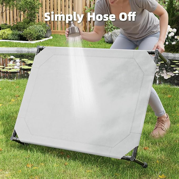 - 【Indoor/Outdoor Use】The 8.5-inch-high breathable mesh pet bed is weather-resistant and suitable for both indoor and outdoor use. Whether in the backyard, on the balcony, patio, poolside, or camping, it keeps your dog dry and comfortable.