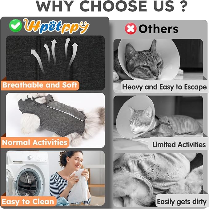 - 【Ideal for Post-surgical Care】Our cat recovery suit is designed to prevent licking or scratching of surgical wounds, promoting faster healing and reducing the risk of infection. Versatile and suitable for post-surgery, spaying, skin issues, weaning, overgrooming, abdominal wounds, and more, this suit not only saves on vet bills but also ensures your cat's comfort and protection during recovery.
