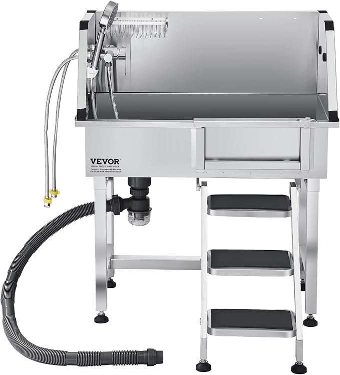 VEVOR Stainless Steel Dog Washing Station, 34 inch Pet Grooming Tub w/Storage Stairs, Faucet & Showerhead & Soap Holder Dog Bathtub, Pet Wash Station for Small Pets (Right Door)
