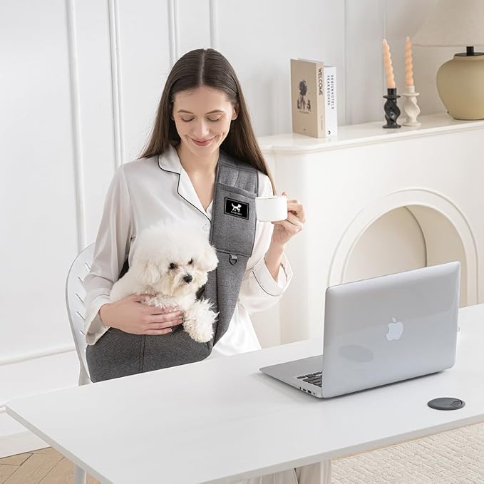 - Pressure-Relieving Comfort Design – PAWPUBBY dog carriers for small dogs features upgraded improvements. Compared to traditional dog slings, our puppy sling widens and thickens the shoulder straps, using mechanical design to evenly distribute pet weight, reducing shoulder and waist burden on the human body while alleviating shoulder fatigue. The soft inner lining mitigates vibrations during running or bumpy movements, protecting pet joints and reducing pressure on the spine and limbs.