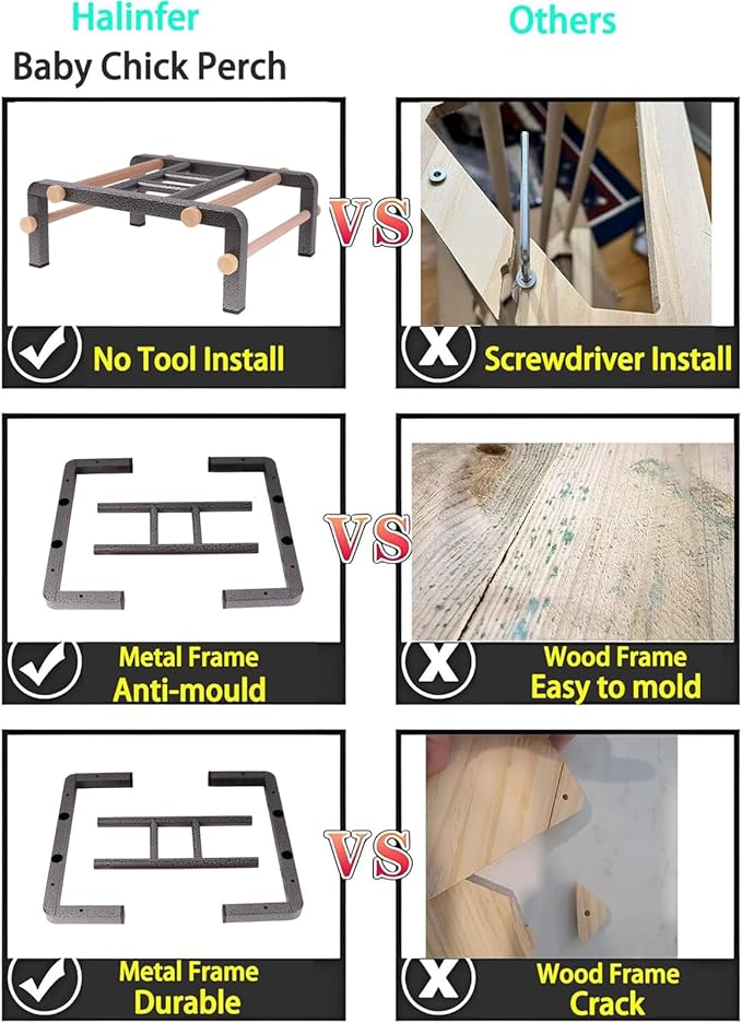 - MATERIAL QUALITY: Metal frames are more stable and last for long to sit on the table. Smooth-finished wood construction ensures splinter-free surface for delicate bird's feet, the metal ladder provides better resting away from the ground.