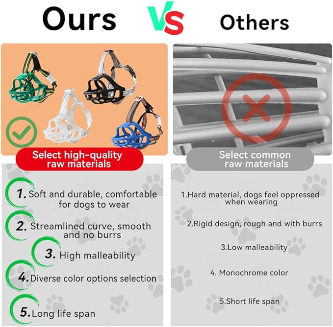 - LIGHTWEIGHT & DURABLE:Made from odorless TPE silicone, this muzzle is lightweight enough for small dogs yet strong and sturdy enough for medium and large dogs, ensuring durability and safety during daily use.