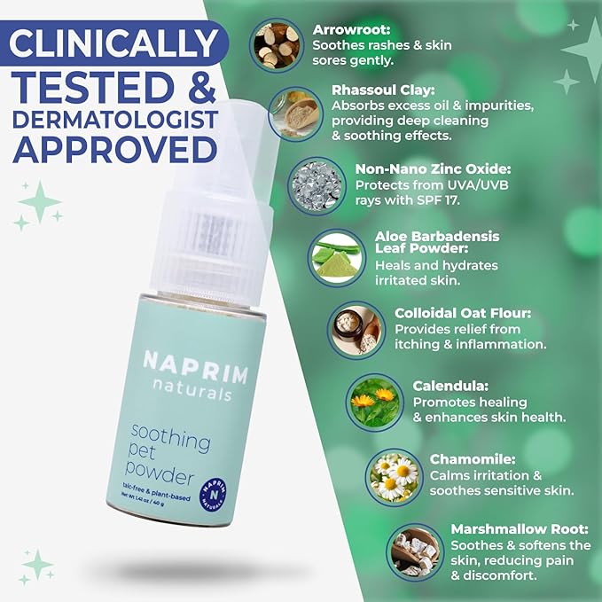 Soothing Pet Powder – Talc-Free Itch Relief for Dogs - Hot Spot Treatment, Dog Allergy Relief & Dry Shampoo for Dogs - Dog Paw Balm & Wound Care - First Aid for Sensitive Skin