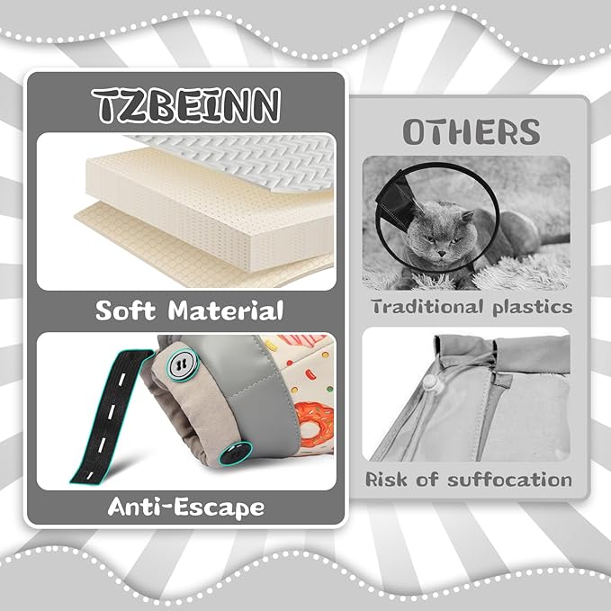 - 【Vet-Approved Recovery Protection】---Unlike bulky plastic cones, our donut cat cone uses a medical grade coverage angle to prevent licking of wounds on paws, tails, or surgical sites. Accelerating wound healing while ensuring visibility, it is the best choice for postoperative care, allergy management, or beauty care and the design is the latest treatment perfect solution praised by veterinarians!