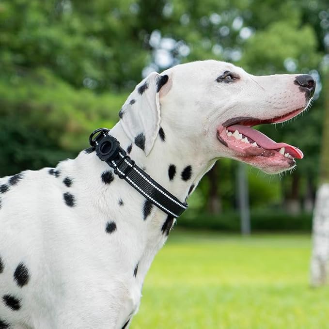 JSXD AirTag Dog Collar, Night Reflective Nylon Dog Collar for Small Medium Large Dogs,Lockable Quick Release Buckle,Padded Breathable Pet Collar with AirTag Holder (Blue, Large)