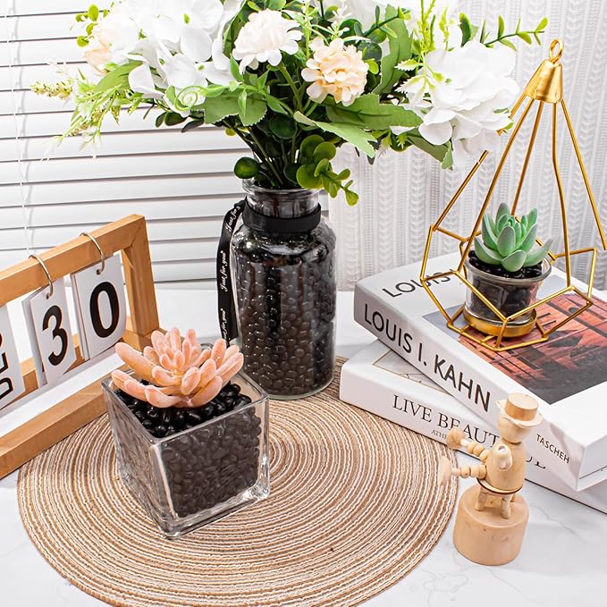 Keedolla 15 Oz Aquarium Fish Tank Gravel Rocks Glass Pebbles Gemstones, Black Glass Stones Vase Filler for Fountain Succulent Plant Decorative Rock Pebble Stone