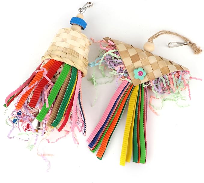 - These bird toys are made of colorful crinkly papers and sola balls, natural materials that are safe and fun for birds to chew on and keep your parrot busy and happy