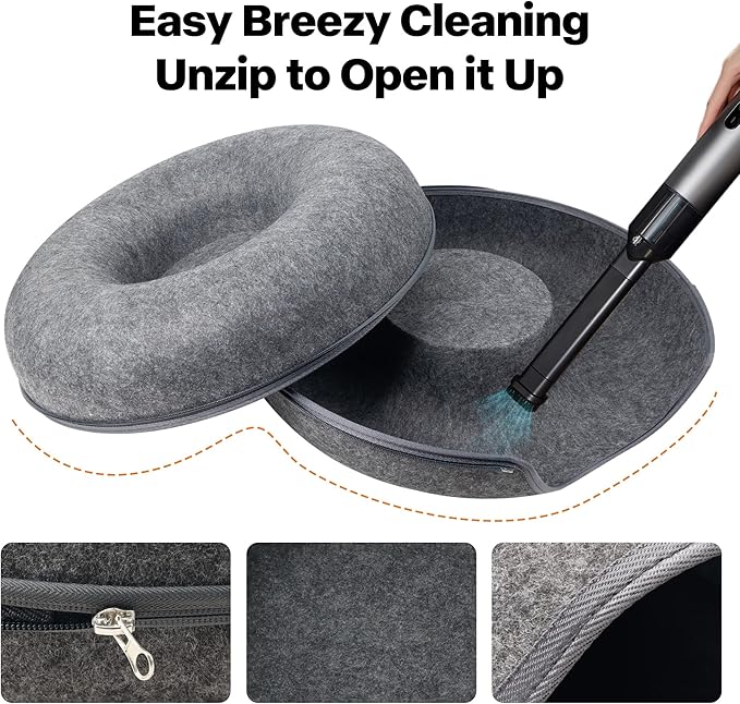 - 🧼 Removable and Easy to Clean With a convenient zipper design, assembly and cleaning are a breeze. Simply unzip, separate the parts, vacuum, or wash with mild detergent, then air dry to maintain a clean and hygienic space for your cat year-round. The perfect combination of cat cave beds and cat tunnels that’s easy to maintain!