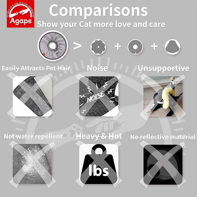 - 【Enhanced Protection & Freedom】The Agape Cat Recovery Collar features a 304 stainless steel support ring and a larger diameter, addressing the issue of insufficient protection found in some collars that are too soft or too small. This design ensures your cat can eat, drink, and play freely, without blocking their vision, allowing them to maintain their usual activities and comfort during recovery (Please note: While using the collar, it may affect your cat's ability to enter a closed litter box or cat door)
