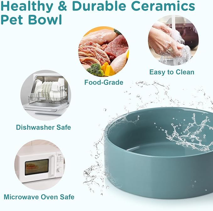 - Lead-Free Ceramic Pet Bowls - 8.3" Ceramic Dog Bowls with 60 OZ Capacity Fired at high temperature with a food‑grade glaze that contains zero lead or cadmium, these non‑porous bowls help keep meals tasting fresh, rinse clean in seconds, and both MICROWAVE SAFE and DISHWASHER SAFE