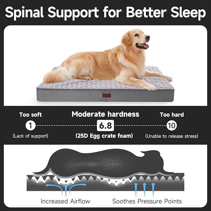 - Luxurious Comfort & Durability: Enjoy premium quality materials – plush corduroy surface with a 2-3 mm hair length, bonded with TPU for water resistance, and 25D Egg Crate Foam. Rest assured, our beds pass rigorous CP65 testing, ensuring safety and comfort for your pet.