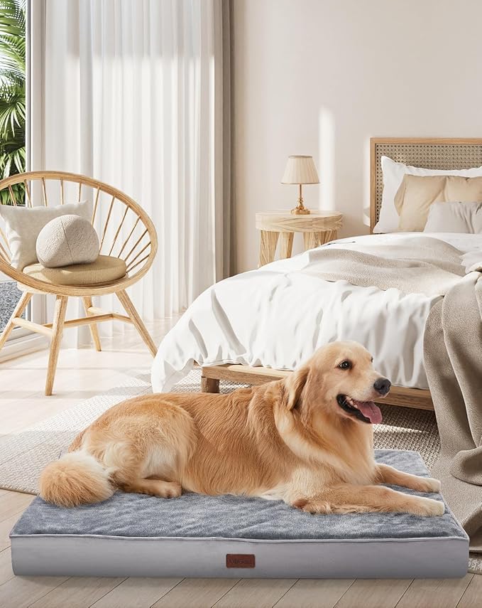 OhGeni Orthopedic Waterproof & Machine Washable Dog Bed for Large Pets, Suitable for Crates, 25D Egg Crate Foam, Non-Slip Bottom & Removable Cover, Flannel Fabric, 41 Inches(Gray)