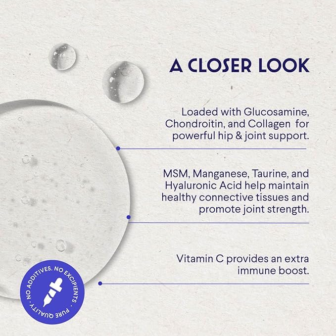 - HIP & JOINT SUPPORT: Our cat glucosamine chondroitin supplement is packed with essential nutrients and joint supporting ingredients to help your cat maintain flexibility, mobility and joint strength no matter their age. Our cat glucosamine liquid is highly bioavailable and helps support joint mobility, ease joint stiffness and helps reduce occasional joint discomfort. This cat chondroitin and supplement can help reduce occasional joint discomfort and supports tendons, ligaments, cartilage and joints.