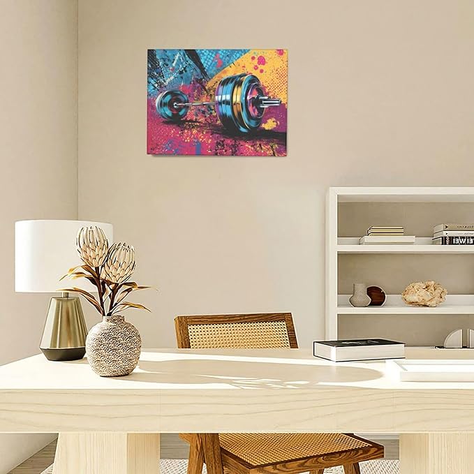 Gym Wall Art Weightlifting Fitness Canvas Wall Decor Barbell Sports Training Pictures Painting Banksy Street Graffiti Print Artwork Framed Decorations Gifts for Sports Lovers Gym Living Room Bedroom 12"x16"
