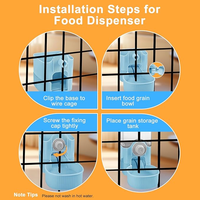 - Cage Pet Dispenser: It suits for small animals, as Cats, Dogs, Rabbit, Ferret, Chinchilla, Bird, Hedgehog, Guinea Pig and so on. Suggestions: the recommended spacing of cage wire mesh is 3-6cm (1.2-2.4inch), please measure your cage spacing before purchase.