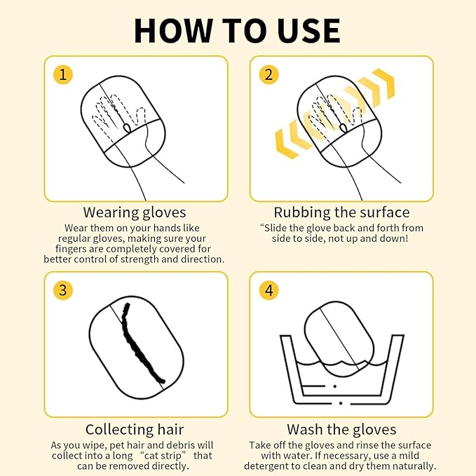 - Wide Coverage, Quick Results :Grooming Gloves for Pet Hair Designed to handle large surfaces with ease, carpets, rugs, and more in record time. No more tedious rolling or spot-cleaning – just glide your hands and watch the magic happen