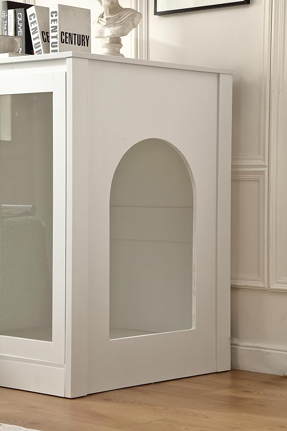 - 2)【Worry-free monitoring with our crystal-clear glass doors】Observe your cat's activities without disturbing them. The scratch-resistant safety glass provides clear and great visibility while containing litter scatter, creating the perfect balance between privacy for your cat and peace of mind for you.