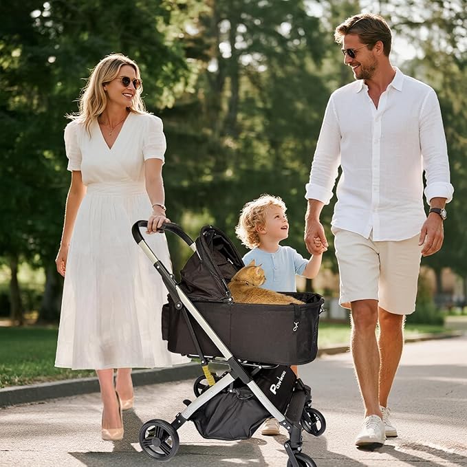 - ใ๐๐ฉ๐จ๐ข๐ฅ ๐ฒ๐จ๐ฎ๐ซ ๐๐ฎ๐ซ๐ซ๐ฒ ๐๐๐ฆ๐ข๐ฅ๐ฒ ๐ฆ๐๐ฆ๐๐๐ซ ๐ฐ๐ข๐ญ๐ก ๐ญ๐ก๐ ๐ฅ๐จ๐ฏ๐ ๐๐ง๐ ๐๐จ๐ฆ๐๐จ๐ซ๐ญ ๐ญ๐ก๐๐ฒ ๐๐๐ฌ๐๐ซ๐ฏ๐ใ: This 4-in-1 multi-functional pet stroller combines a cozy pet cabin, carry bag, storage basket, and car seat adapter in one sleek package;- Ultra-lightweight frame (only 10 lbs!) with one-touch folding for effortless portability;- Detachable carrier: Easily carry your pet or secure it as a car seat