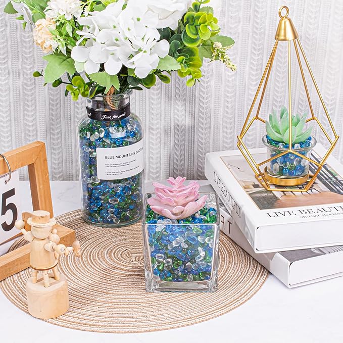 - Features: The glass gem stones are like river gravels, no dye or other methods of artificial coloring is used, never faded. Smooth edges no harm to animals and plants, you can rest assured that using. NB the glass pebbles are 0.93LB Heavy Enough BUT SMALL BAG