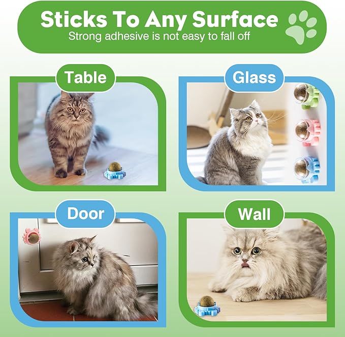 - Super value 4-piece set, safe and worry-free - This catnip wall ball combination set contains 4 durable balls with international safety certification, specially designed for multi-cat families. Made of food-grade environmentally friendly materials, it supports repeated filling and use, which is economical and environmentally friendly. One set solves the entertainment needs of multi-cat families.