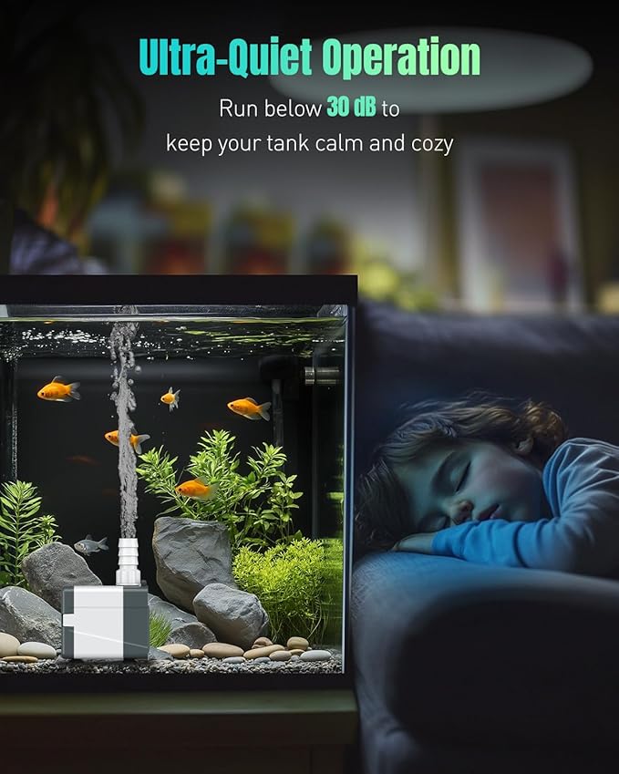 - For 20-50 Gallon Tanks: Measuring 3.3" L x 2.2" W x 2.87" H, this water pump fits perfectly in 20-50 gallon freshwater and saltwater tanks. Great for aquariums, tabletop fountains, pet water dispensers, bird baths, and other water features