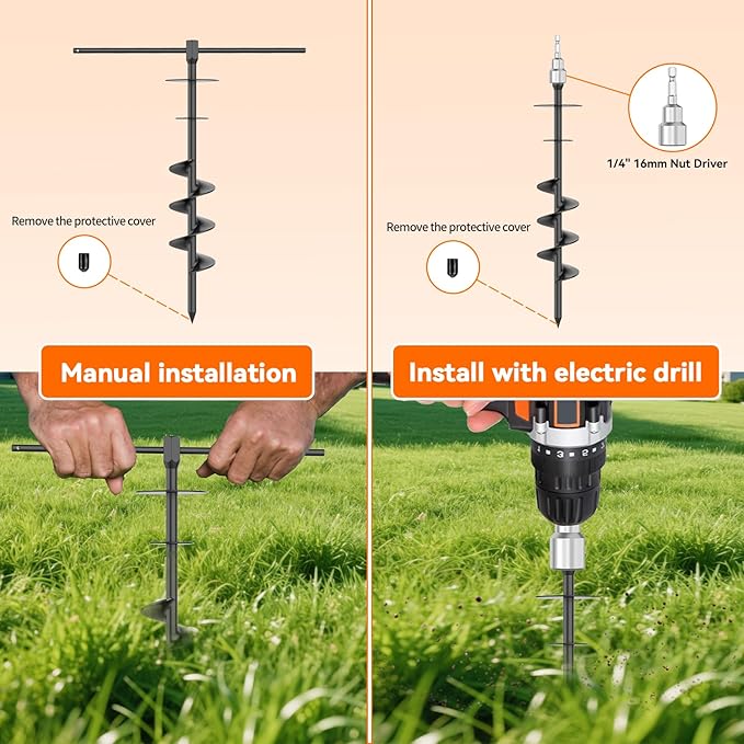 - Easy Installation: Included with each set is an iron rod installation tool, making it effortless to drive the stake into the ground securely.With the corkscrew shape design,this canopy stake can better penetrate into the soil