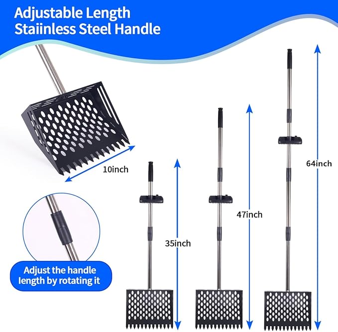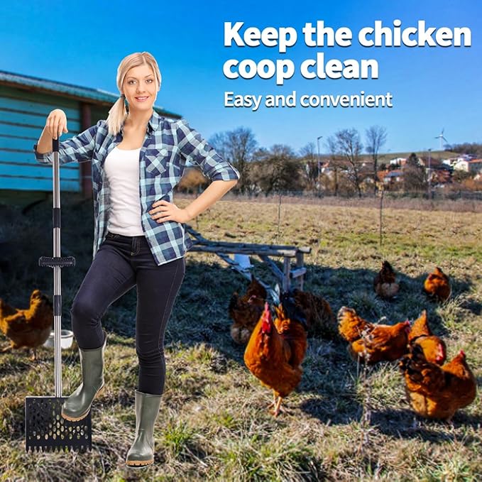 - 2-in-1 Poultry Tool: Industrial-grade rake-scoop-sifter hybrid streamlines coop cleaning and debris raking, ideal for tall users