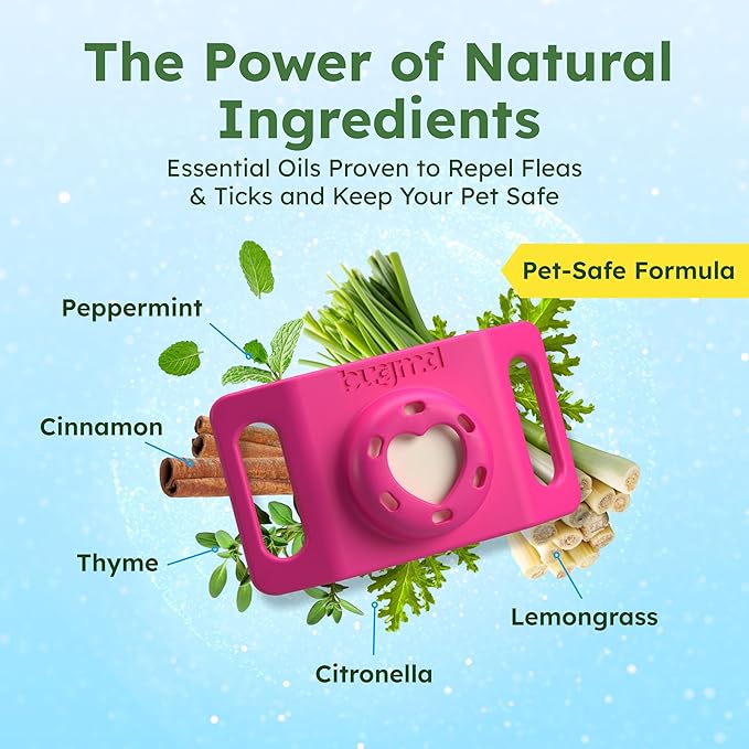 BugMD Paw Guardian Flea & Tick Pendant (3-Pack) with AirTag Holder – Plant-Based Flea & Tick Prevention for Dogs – Pet Collar Tag & GPS Tracker Holder for Dogs – Pink