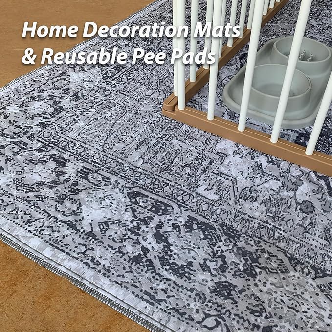 nunubaby Washable Pee Pads for Dogs, Stylish, Non-Slip and Leak-Proof Pee Pads. Reusable Potty Pads for Dogs for Crates and Floors.(Gray/Geo, 36" x72")