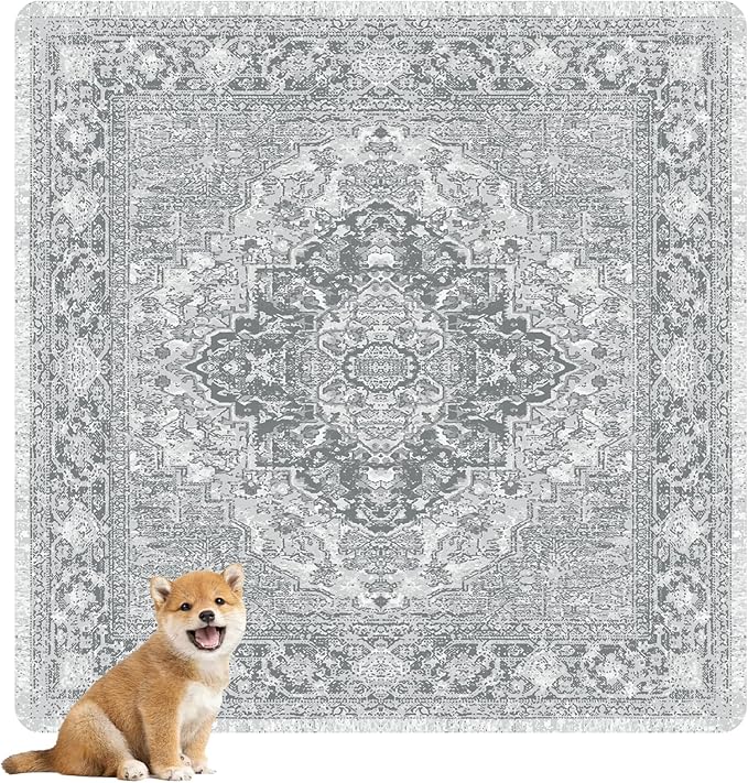 nunubaby Washable Pee Pads for Dogs, Stylish, Non-Slip and Leak-Proof Pee Pads. Reusable Potty Pads for Dogs for Crates and Floors.(Gray/Geo, 54" x54" )