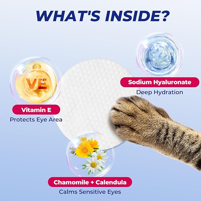 - Hydrate and Protect - Rich in sodium hyaluronate, glycerin and vitamin E, Wellix dog and cat cleaning wet wipes deeply moisturize the skin around the eyes for discharge & irritation, relieve dryness and roughness, and keep the eye area fresh