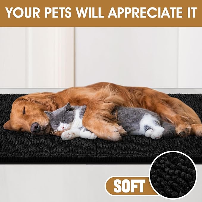 IM HOME 36" x 24" Black Dog Door Mats for Muddy Paws, Chenille Absorbent Dog Mat, Non Slip Heavy Mud Mat for Dogs, Soft Pet Bed Mat for Entryway, Mud Paws, Inside Floor