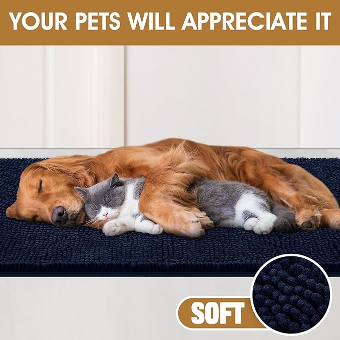 IM HOME 36" x 24" Navy Blue Dog Door Mats for Muddy Paws, Chenille Absorbent Dog Mat, Non Slip Heavy Mud Mat for Dogs, Soft Pet Bed Mat for Entryway, Mud Paws, Inside Floor