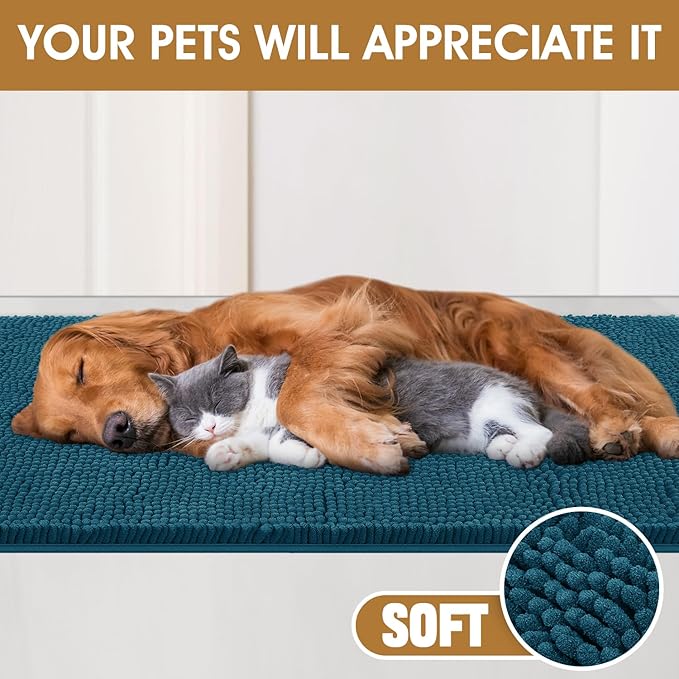 IM HOME 36" x 24" Teal Blue Dog Door Mats for Muddy Paws, Chenille Absorbent Dog Mat, Non Slip Heavy Mud Mat for Dogs, Soft Pet Bed Mat for Entryway, Mud Paws, Inside Floor
