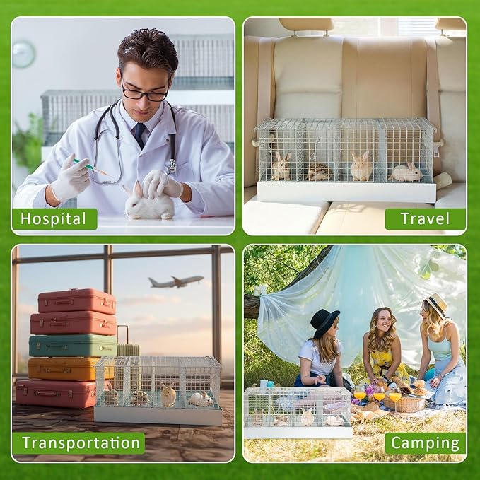 - Easy Transport with Carry Handles: designed for both short trips and extended outings, this bunny transport cage comes with sturdy handles on both sides for effortless carrying. Remove the divider to create a larger shared space when transporting more than one rabbit at a time. Ideal for travel, vet visits, outdoor events, or even as a temporary indoor pen
