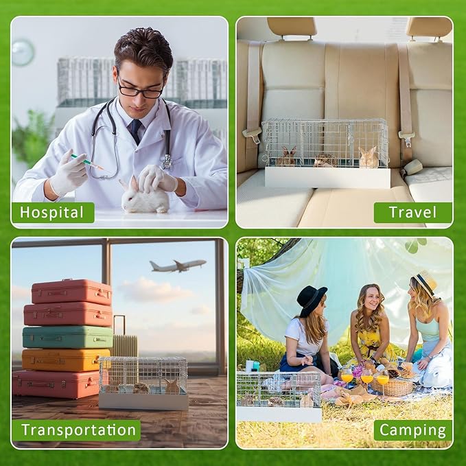 - Quick Setup & Foldable Storage: no complicated tools or small parts needed—this collapsible rabbit cage snaps together easily with built-in clips. When not in use, fold it flat for compact storage. A user-friendly setup makes it great for on-the-go families or first-time pet owners