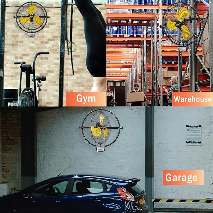 - Moves Much Air - Upgraded 1/5 HP Powerful Motor, making the 20-inch wall mount fan with Maximum 8.0m/s airflow. High velocity fan runs at 5000 CFM in high speed, medium 4200 CFM, low 3800 CFM. Great for warehouse, workshop, factory, garage, basement, and covered patio. This is an industrial wall mounted fan, the noise is slightly louder than home fans, but less noisy than most of the same size industrial fans (Wind noise 61dB by 10feet away).