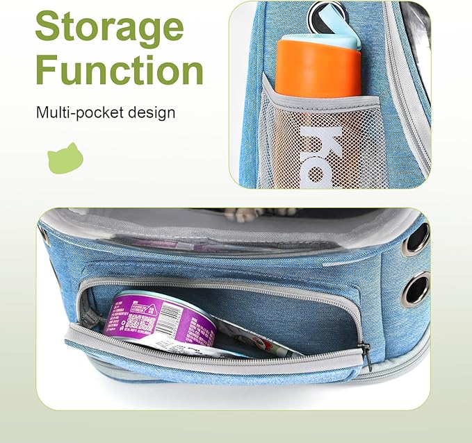 - Multi-Pocket Design: Our pet carrier backpack offers plenty of storage options for your convenience. With side pockets and hook holes, you can easily carry essentials such as treats, toys, and water bottles for your pets. The multi-pocket design allows you to organize your belongings efficiently, making outdoor adventures and trips more enjoyable.