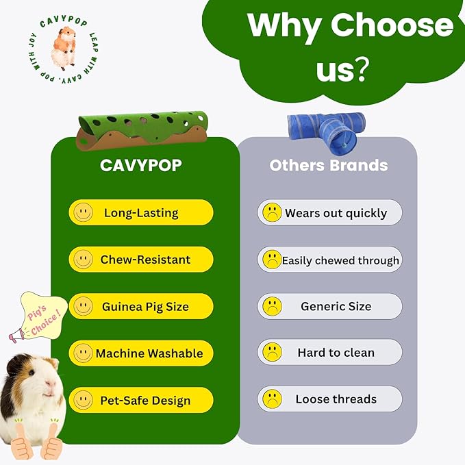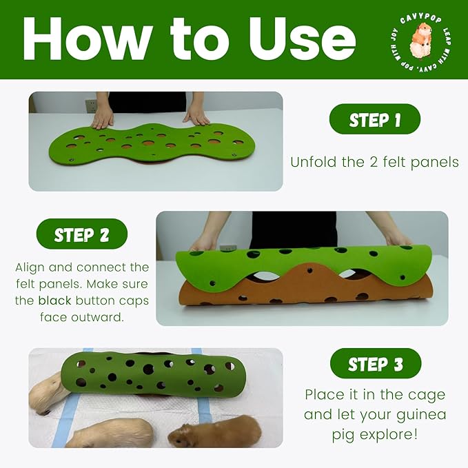 - đš IDEAL SIZE FOR GUINEA PIGS: Measuring 26 Ă 11 Ă 8 inches, this tunnel is perfectly sized for guinea pigs to run, rest, and hide. With a body shape similar to rabbits, it also comfortably fits dwarf rabbits if needed.