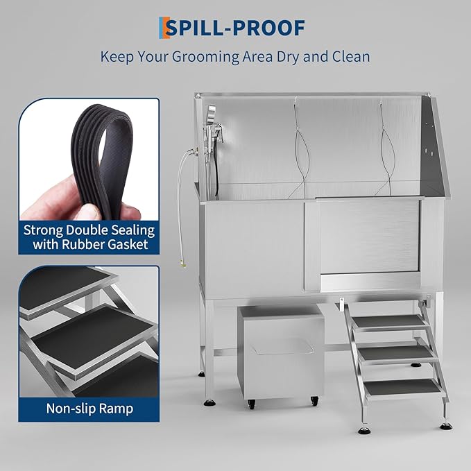 - Efficient Drainage System Removable floor grate prevents water accumulation and simplifies post-bath cleanup. Maintains tidy workspace during grooming sessions.